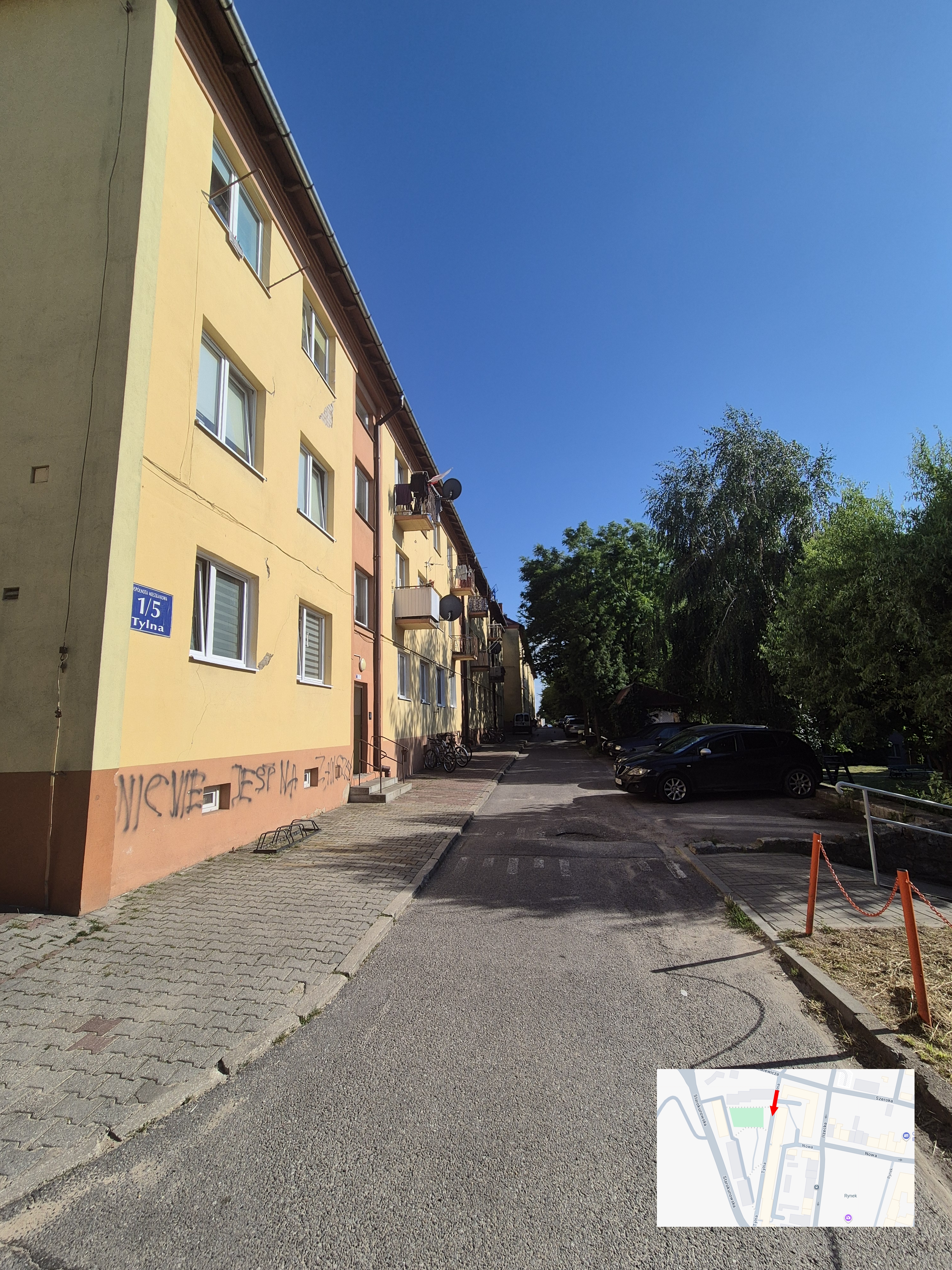 Today the street is called Tylna, and has just 1 long building (Numbered "1/5").